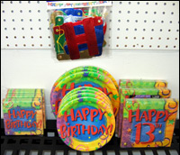 happy pattern including plates, napkins, balloons, and a "Happy 13th