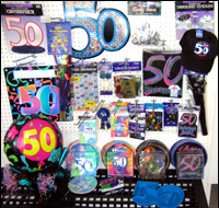 hat, a "50" shaped dish, "50" yard sign, "50"