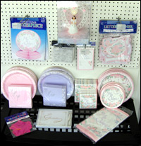 birthday patterns with plates, napkins, candles, "16" confetti,