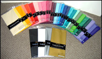 in all colors plus "silverware" look. Colored plastic plates are