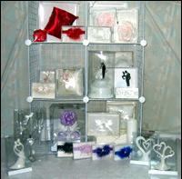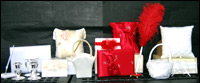 guestbooks, pens, garters, cake toppers, flower girl baskets, unity candles