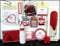Ruby red 40th anniversary pattern with plates, cups, napkins, invites,